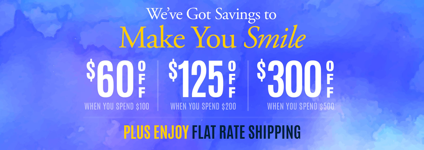 $60 Off $100, $125 Off $200 or $300 off $500 and $9.95 Shipping