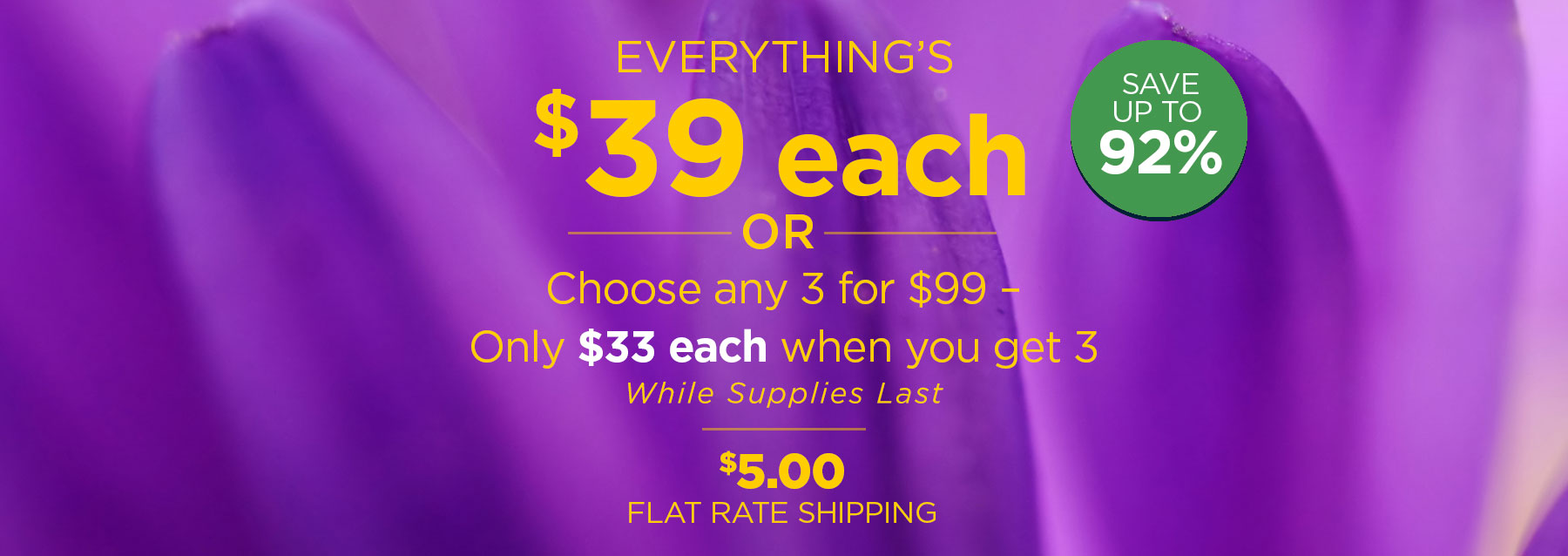 $39 each or SAVE MORE with 3 for $99* + Enjoy $5 Shipping on all orders!