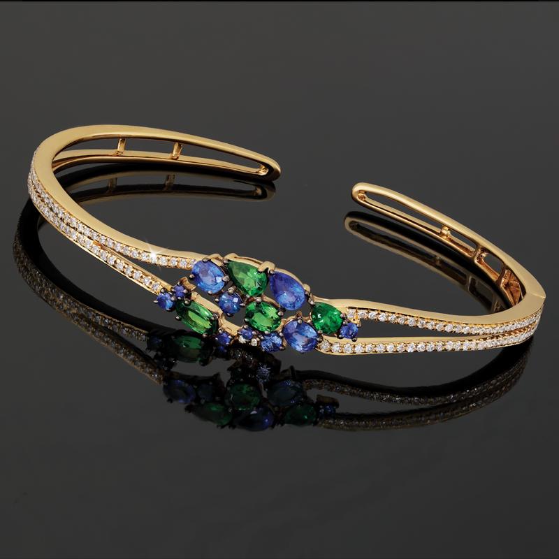 Tsavorite and sapphire in 14K gold mingle with diamonds for the ultimate luxurious gift