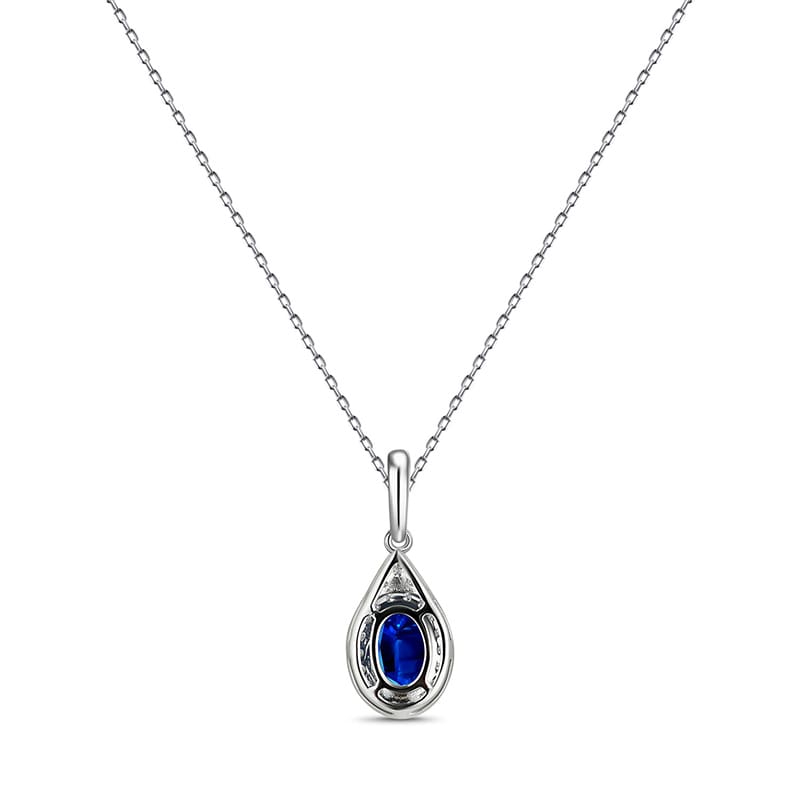 14K White Gold Oval Blue Sapphire & Diamond Necklace
