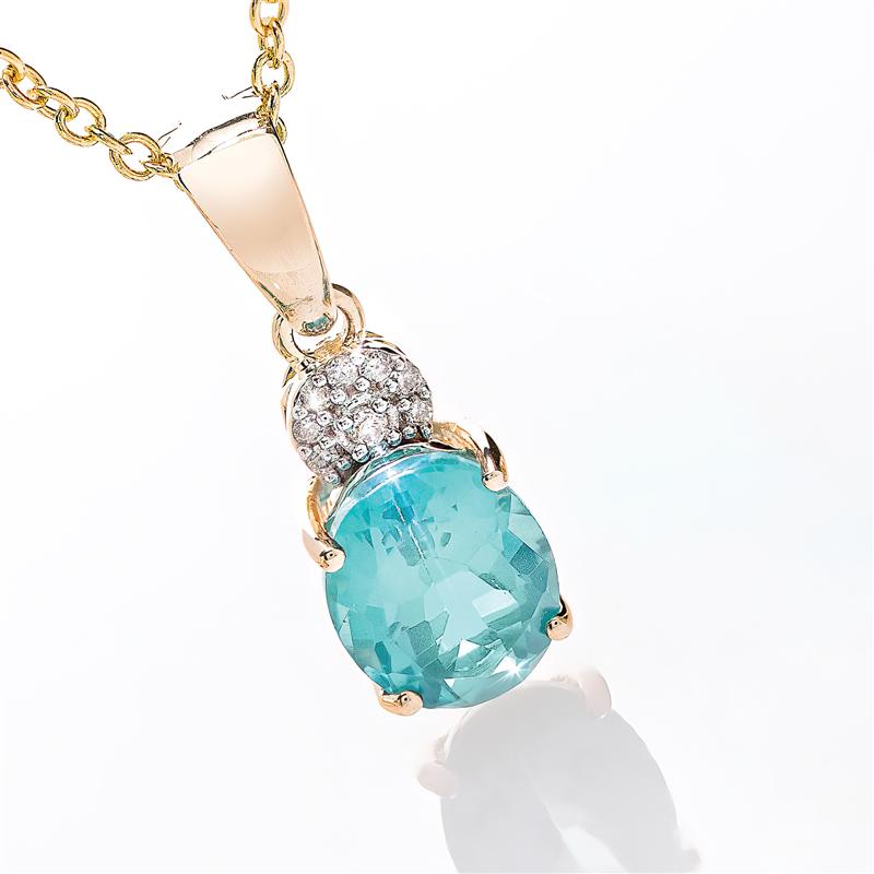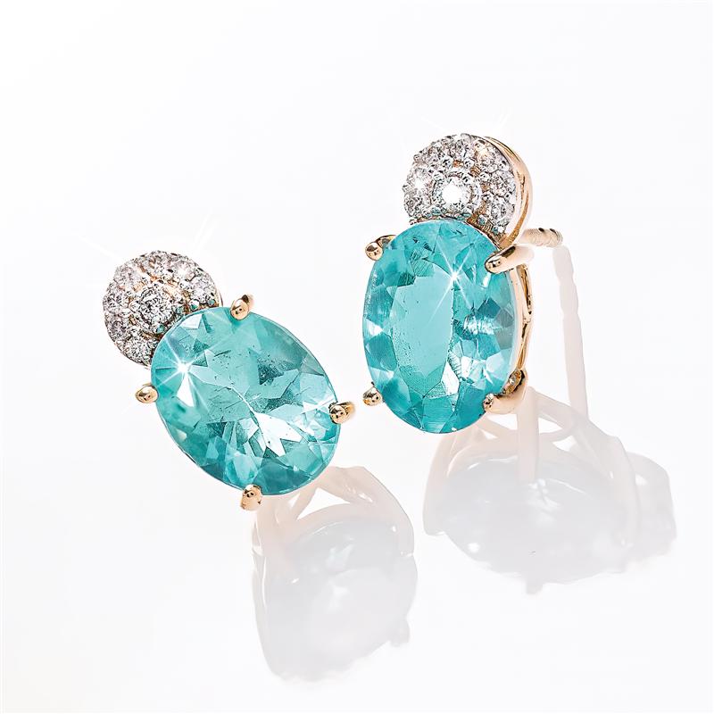 The pieces you see here showcase apatite in its coveted shade of Paraiba tourmanline blue. We’ve crowned these rare gemstones with white hot dia-monds. Guaranteed to satisfy your craving for something truly unique and stunningly beautiful.