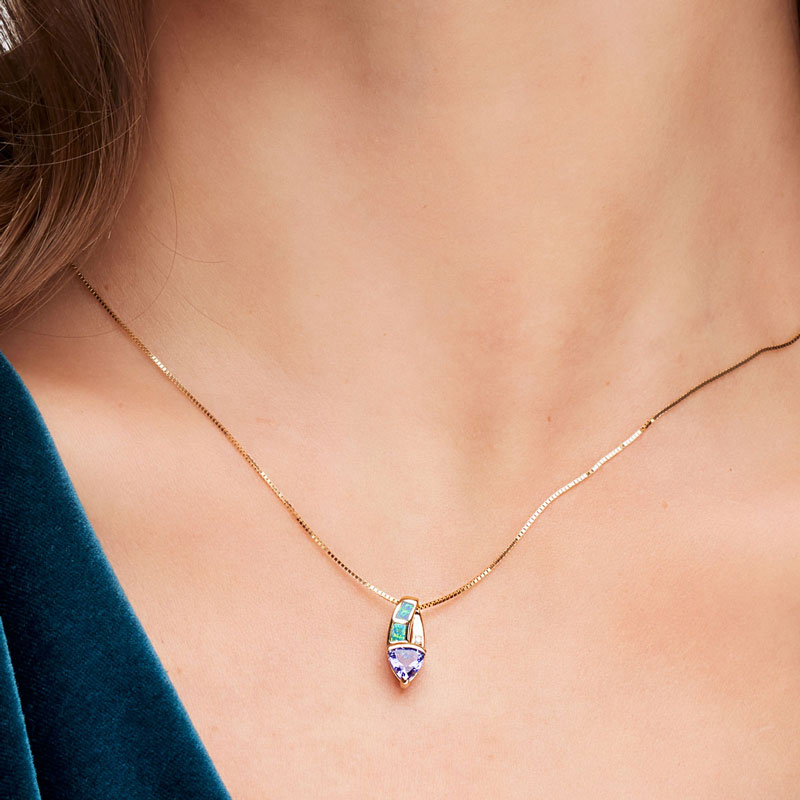 Two of the world’s most beautiful and rare gemstones come together for a rare event. We’ve united ethereal violet blue tanzanite and highly-coveted Australian opals into a striking necklace guaranteed to spark her interest.