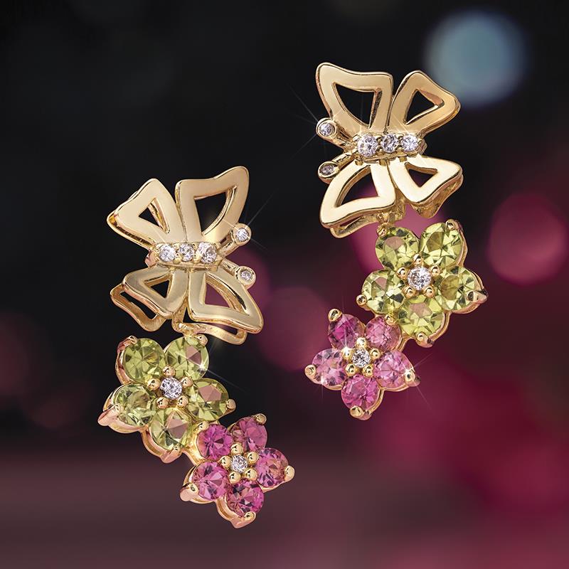 18k Gold Pink Tourmaline & Peridot Butterfly Earrings