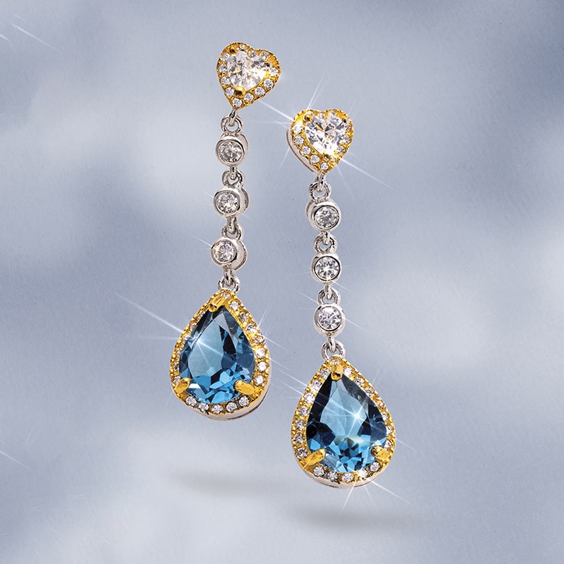 In the grand tapestry of the world’s cities, London stands as a beacon of unyielding class and indefatigable sophistication. This city, with its regal vistas and venerable streets, carries the weight of history with a dignified grace, unmatched by any modern metropolis. London, the very heart of the British Empire, where monarchs and statesmen have walked, is a living museum, a testament to the enduring strength of British culture. The city’s architecture, from the gothic spires of Westminster Abbey to the majestic sweep of the Houses of Parliament, speaks of a legacy steeped in grandeur. Here, art and culture intermingle with commerce and governance, creating a milieu as rich as it is refined. This, indeed, is a city like no other. Only London Blue Topaz is named for this elegant city because it is the stone with the most sophisticated blue color. Here over 4 carats of this lovely stone are set in the classic style surrounded by baguets of DiamondAura®. Whether snacking on strawberries at Wimbledon or shopping for books in Notting Hill, these stones smack of good taste and great style. See you at Ascot!