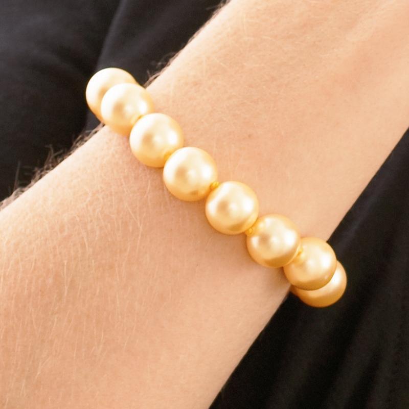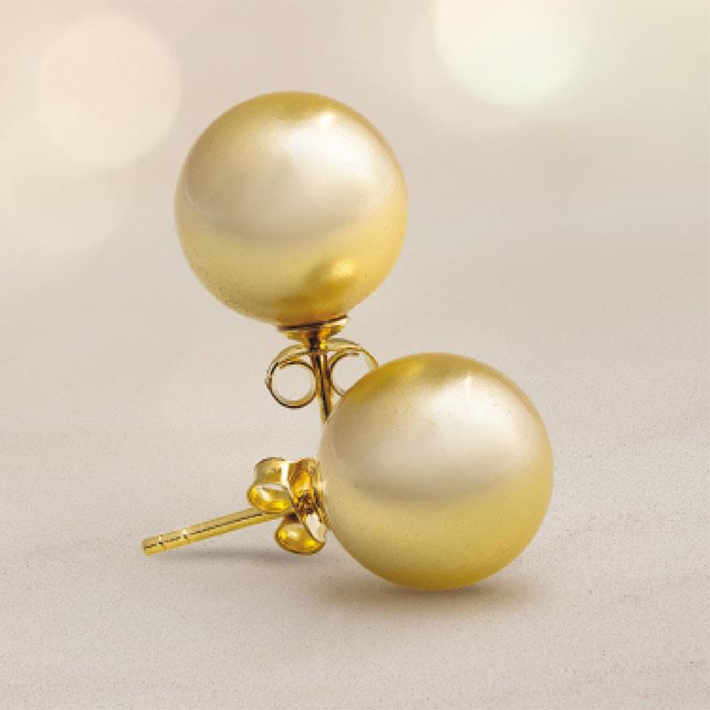 Golden beauties. This pairing of science and nature results in extremely large spheres - 12mm - but they are much more consistent in shape than ordinary pearls that have to be extracted from 4-5 year old oysters that are dead. They are also less porous so you don't have to worry about perfumes or cosmetics discoloring these pearls like you do with ordinary pearls. In a more ecologically friendly approach, the Australian Pacific pearl seeds are extracted from fresh oyster shells and then organically micro-coated in the laboratory with the same nacre that coats naturally grown pearls.