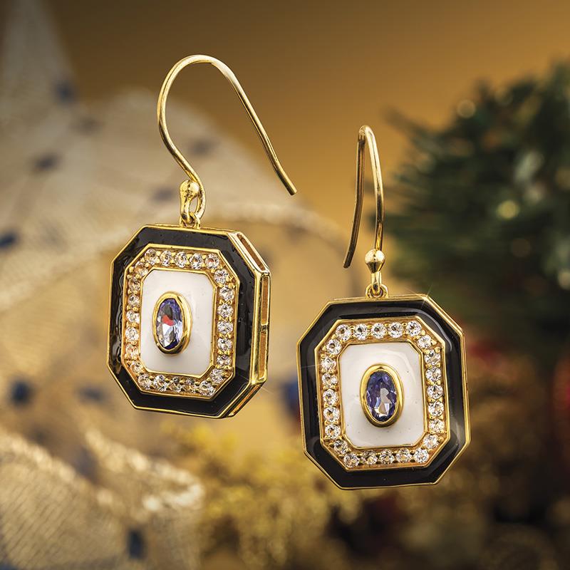 Presenting the Deco Continental Earrings, jewelry that places tanzanite and white topaz in 14-karat yellow gold-finished .925 sterling silver. Tanzanite can only be found one place on Earth: remote hills in the shadow of Mount Kilimanjaro. Tanzanite is no ordinary gemstone. Henry Platt, past president and chairman of Tiffany & Co., called tanzanite, “the most important gemstone discovery in over 2,000 years.” This jewelry offers a fresh take on art deco, one of the boldest and most beautiful visual styles ever. — Jack B.