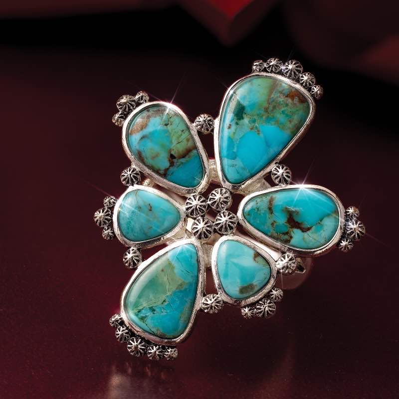 This Arizona Turquoise necklace and ring are a true marvel, setting a new standard for beauty in our collection. Crafted with uniquely vibrant enhanced turquoise they showcases a striking blue hue laced with natural copper veining, creating a mesmerizing pattern that only Arizona turquoise can offer. Carefully hand-selected, each stone embodies the rich landscapes of the Southwest, with colors reminiscent of endless skies and rugged desert terrain.