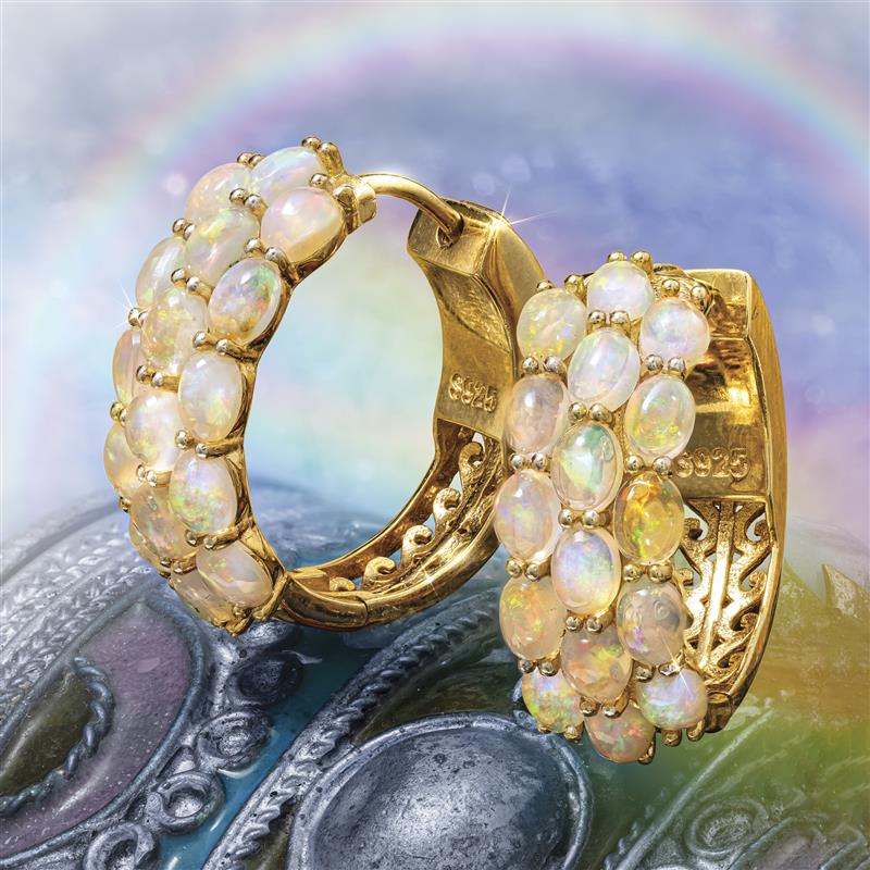 These pieces showcase 12 total carats of these iridescent wonders in gold-finished sterling silver. We're offering this unsurpassed explosion of beauty and color for an exclusive Stauer price. A small price to pay for a seven-million-year-old piece of magic.