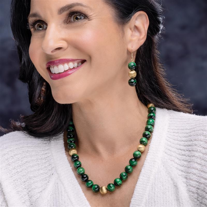 We’ve created the Eye of the Tiger Necklace to showcase this magnificent gem. This necklace features enhanced tiger’s eye with an unheard of total carat weight of 390.