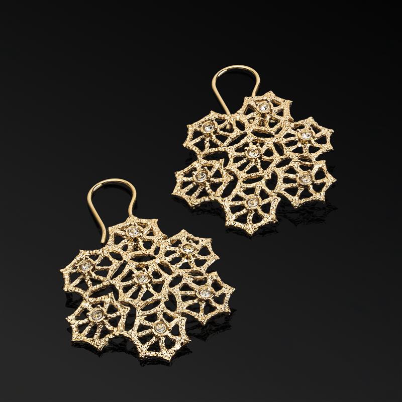 Arezzo is also home to our Italian office. Surrounded by centuries-old olive trees and walls painted with frescos from the Italian Renaissance, we form valuable partnerships with our Italian buyers and artisans. It’s where we dreamed up the concept of Italian snowflakes with Davide. Formally trained as a goldsmith, Davide has magically transformed molten metal into intricate, lacy snowflakes sparkling with white stones.