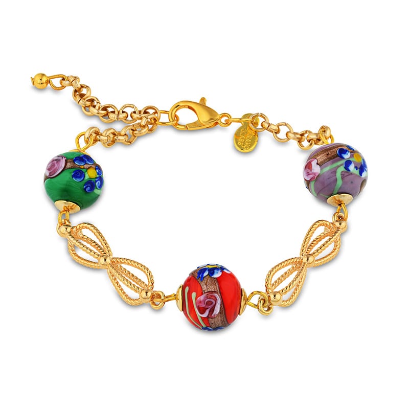These gorgeous creations are crafted on the legendary island using an ancient technique known as fiorato, which stems from the Italian word fiore, or flowered. Expertly crafted under flame, this highly-specialized art form allows the glass masters to create exquisite raised floral designs, resulting in beads of unparalleled beauty. Many refer to these intricate creations as “wedding cake beads,” as it’s an apt description for these fanciful beads, with their “icing” of frills and flowers, as well as their resemblance to bridal bouquets with concentric rows of colored flowers.