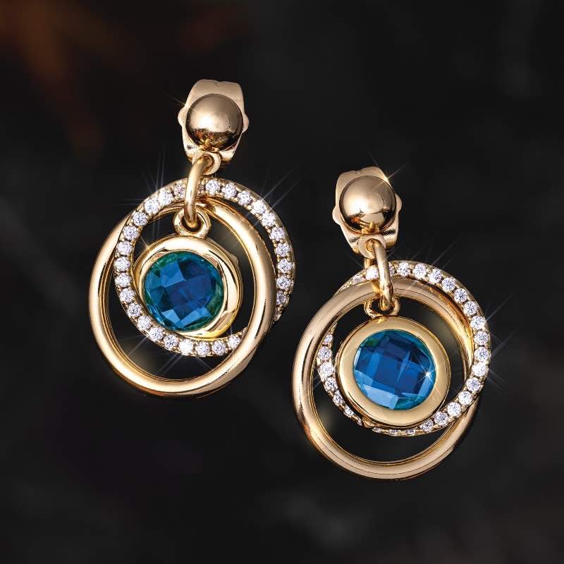 Our designers have created the Galileo Blue Topaz Collection. Made by our artisans in Tuscany, the design is reminiscent of the orbiting planets around the sun. This necklace floats comfortably and freely on the neck and carries a 1 2/5 carat blue topaz in its center. So, if you want to give her the sun, the moon and the stars, this is the much easier way.
