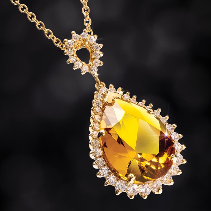 The stones in the Golden Helenite Collection are ceated from heating the ancient minerals contained in the volcanic ash unearthed by the historical eruption of Mount St. Helens. In a stunning pear cut, the stones flash and flicker in radiant glory, echoing its dramatic origins. Set in gold-finished sterling silver and accented with sparkling white stones, this jewelry is perfect for letting her know she’s your greatest treasure.