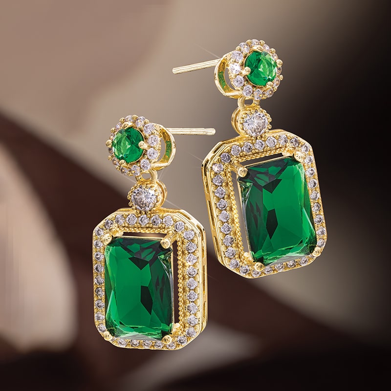 The good news is you don’t need a celebrity’s salary to look like one. Our Halcyon Gaze Earrings give you emerald color in an emerald cut, without the emerald price. That’s because we’ve taken the timeless, high-fashion look of long, faceted emeralds and rendered it in DiamondAura®. Optically clearer and with more fire than a “D” flawless diamond, DiamondAura® is a gamechanger in the gem world, making opulent designs attainable at a fraction of the price.