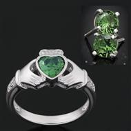 Gorgeous green of helenite was formed when Mount St. Helens erupted in Washington, and the mineral contents of the resulting lava flow and volcanic ash were heated to form the often imitated but never bettered helenite stone. We think the traditional Irish ring of love, friendship and loyalty is the perfect place to harbor a stone greener than the lushest shamrock.