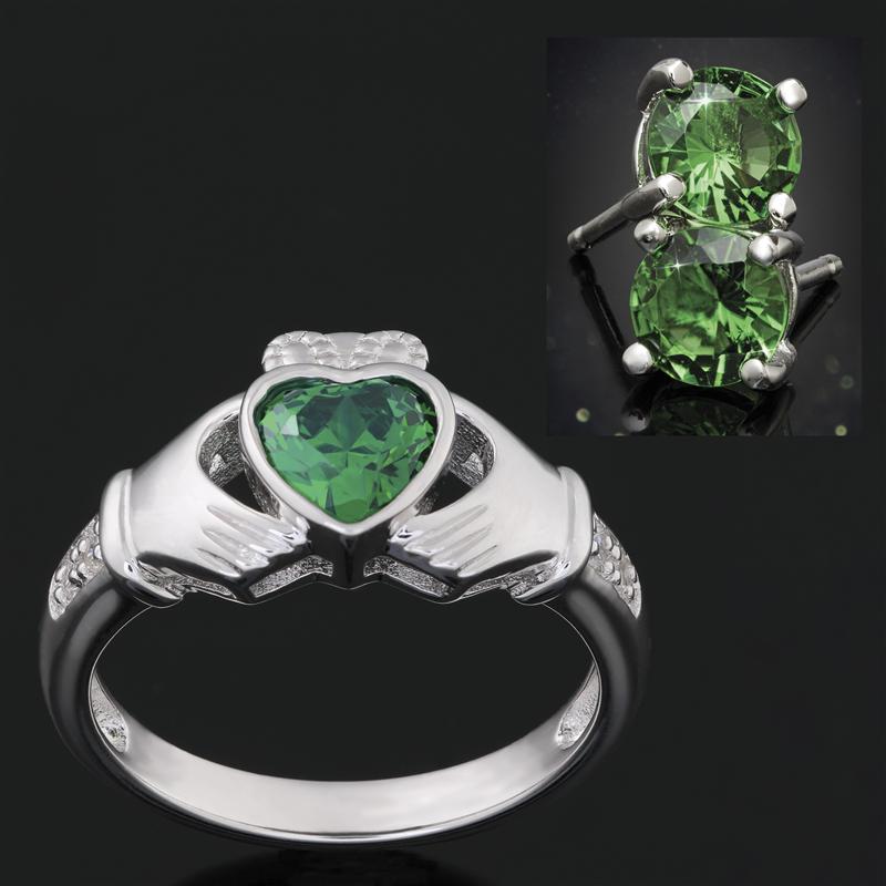 What do you get when you marry an emerald-green American stone of explosive origins with an Irish ring steeped in tradition? A powerful symbol of a lasting relationship. Or, more specifically the Helenite Claddagh Ring.