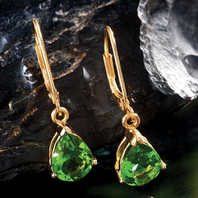 Your satisfaction is guaranteed. Our Helenite Collection puts the gorgeous green stone center stage, with a faceted pear-cut set in .925 sterling silver finished in luxurious gold. The explosive origins of the stone are echoed in the flashes of light that radiates in every piece. Today the volcano sits quiet, but this unique piece of natural history continues to erupt with gorgeous green fire.