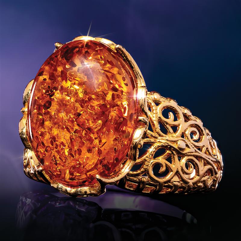 The amber pieces you see here feature ample carats of one of the world’s oldest gemstone. This amber is from the icy Baltic region, famous for containing the world’s finest amber deposits. Importantly, no two stones are identical, because each stone of amber captured some-thing different as it formed, just as every love story is unique.