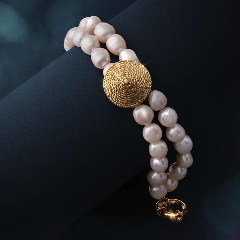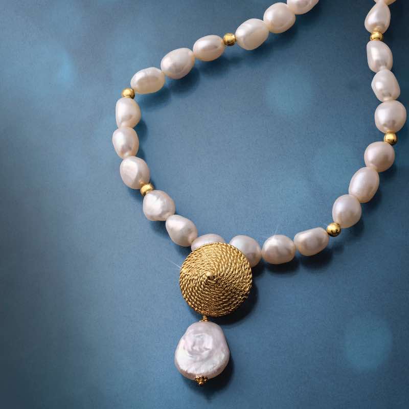 For our latest collection, we partnered with a family-owned Italian workshop that has operated in Torre del Greco for generations. The artisans ensure that each piece not only highlights the pearl’s natural luster but also incorporates Italy’s signature sophisticated design elements. Here, lustrous strands of freshwater pearls are complemented by gorgeous gold-finished sterling silver accents, resulting in pieces that are both luxurious and steeped in cultural heritage.