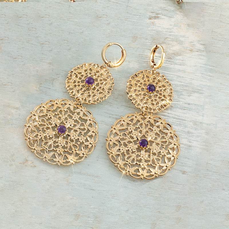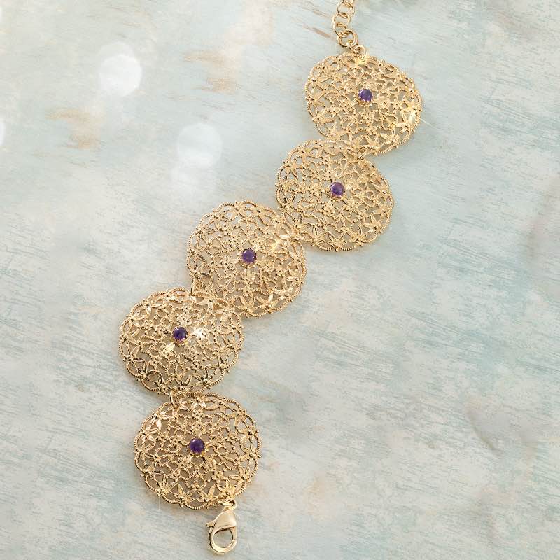 Our new Italian-made Lace Collection pays homage to the Italian art of lace making with a delicate, intricate design crafted from genuine sterling silver. The exquisite detail on these pieces gives an almost ethereal feel that only jewelry artisans with a high level of skill and precision can achieve. Featuring genuine amethyst, this gold-finished sterling silver collection uniquely honors two pillars of Italian craft.