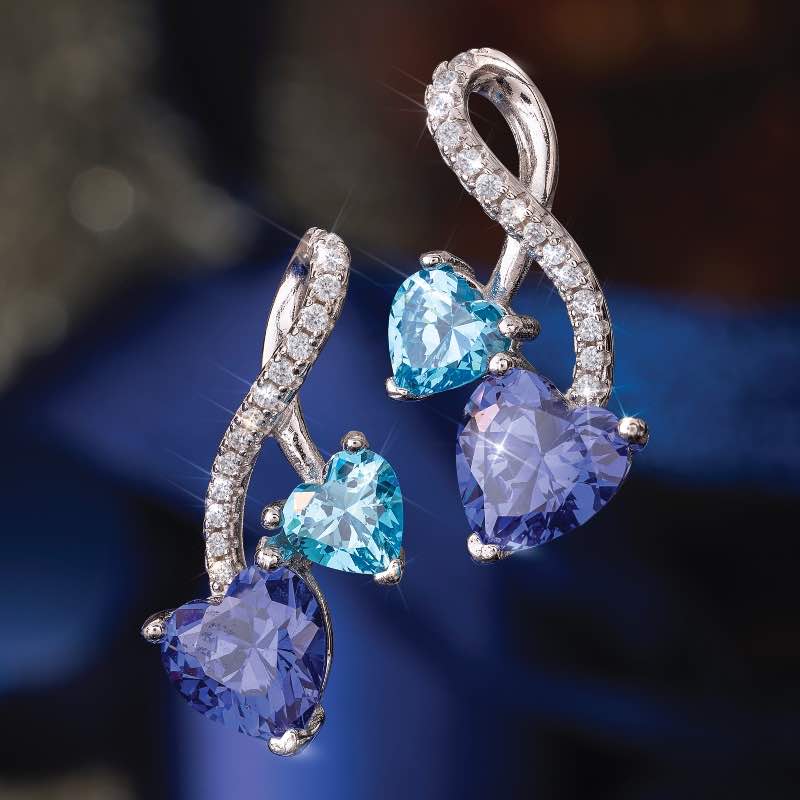 In the famous song, “Volare” (which means to fly), there is a phrase that says “Nel Blu depinto di blu” which means “In the Blue Painted Blue” which refers to the all the shades of blue in the sky. Inspired by this, our Tuscan designer came up with our Volare Collection. In two gorgeous shades of blue, the two heart-shaped stones dance and actually seem to be flying. So maybe when you are dreaming of that flight to Hawaii or the Caribbean this winter, this set will help inspire you for that next flight. As another blue eyed fellow might say, “Come Fly With Me.”