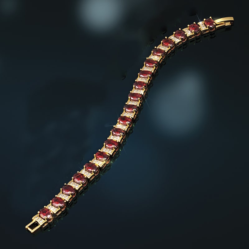Our second bracelet, an exquisite combination of red and white DiamondAura® stones, is a testament to passion and power. Encased in a lustrous 18k yellow gold-plated band, it stands as a bold statement of modern luxury and allure. Both pieces are meticulously crafted to showcase the brilliance and durability of DiamondAura® widely known as the most impressive diamond alternative. It is our wish that you never overpay for jewelry. Embrace the luxury of DiamondAura® and make an unforgettable impression without breaking the bank.