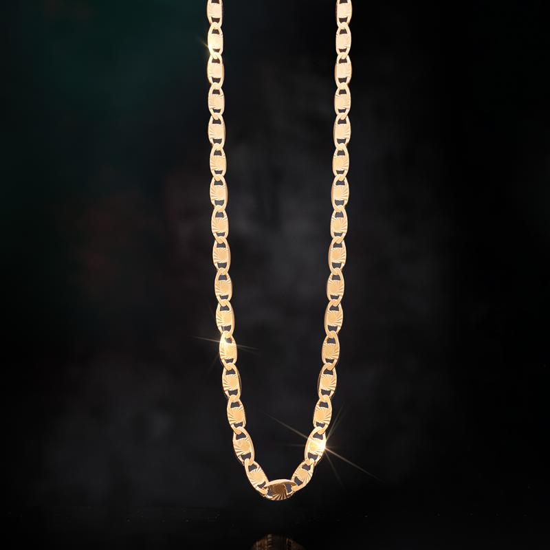 Allow us to introduce the Revitalize Men’s Chain, designed to refresh and renew your look. This Valentino chain design is a unique fusion of Figaro, herringbone, and box chain, all crafted in Italy from .925 sterling silver drenched in luxurious 14K Italian yellow gold. The Revitalize Men’s Chain was then diamond-cut to add light-catching texture.