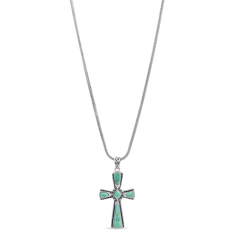 Mission Turquoise Cross Pendant (3 2/5 ctw) & 22" Chain