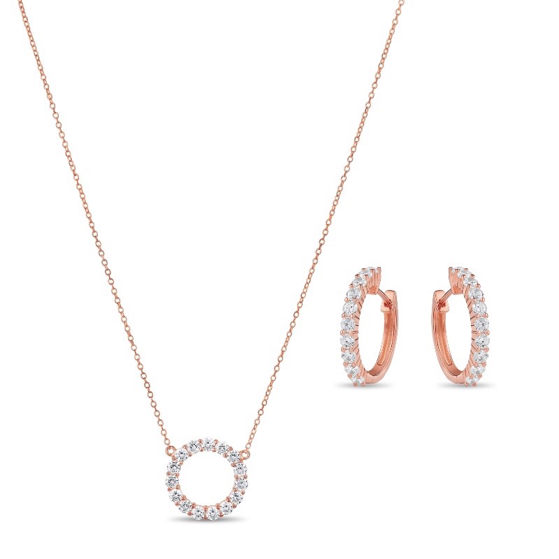 Rose Gold-Finished Sterling Silver Eternity Necklace and Earrings