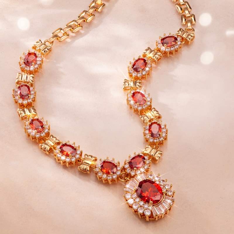 Determined, Ed kept searching and discovered Stauer’s collection, where he found a stunning ruby toned DiamondAura® necklace with the fiery brilliance, but for a fraction of the cost. The design was so stunning that it would be right at home on any red carpet. With the money he saved, he made a bold plan. On Valentine’s night, he handed Nancy the necklace, her eyes wide with joy. Then he whispered his surprise — “Pack your bags, darling. We’re going to Paris!” Her smile said it all — it was the Valentine’s Day of her dreams.