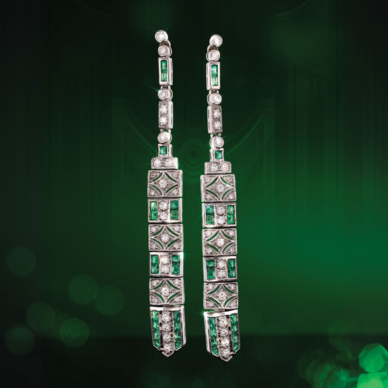 Looking to make an impression of galactic proportions? Then you’ve come to the right place. We’ve joined the most scintillating stone on Earth with one of the world’s most legendary gems and showcased them in one of history’s most influential jewelry styles. Behold the Emerald and Moissanite Art Deco Earrings.