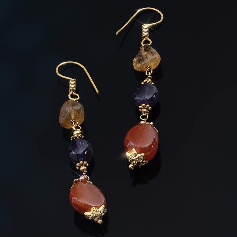 …and I will willingly do without the necessities” quipped architect Frank Lloyd Wright. As soon as we saw these opulent earrings, we realized that he was a wise man indeed. For nothing quite says luxury like eight different types gemstones within one necklace. These exquisite earrings makes an elegant statement featuring tanzanite, topaz, citrine, amethyst, agate, labradorite, tourmaline and rose...read more