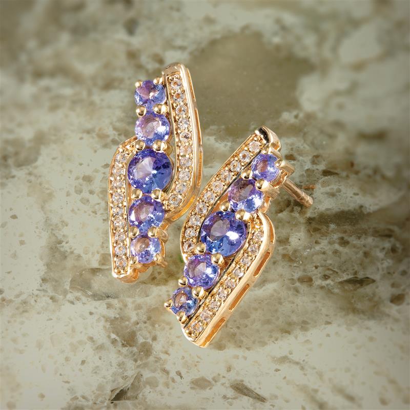 Studded with sparkling white topaz rounds set in yellow gold-wrapped .925 sterling silver, these earrings are the best way to get your hands on tanzanite, and Stauer is offering it at an amazing price in its deepest shade of violet-blue. This is what happens when a rare stone is offered at a rare price.