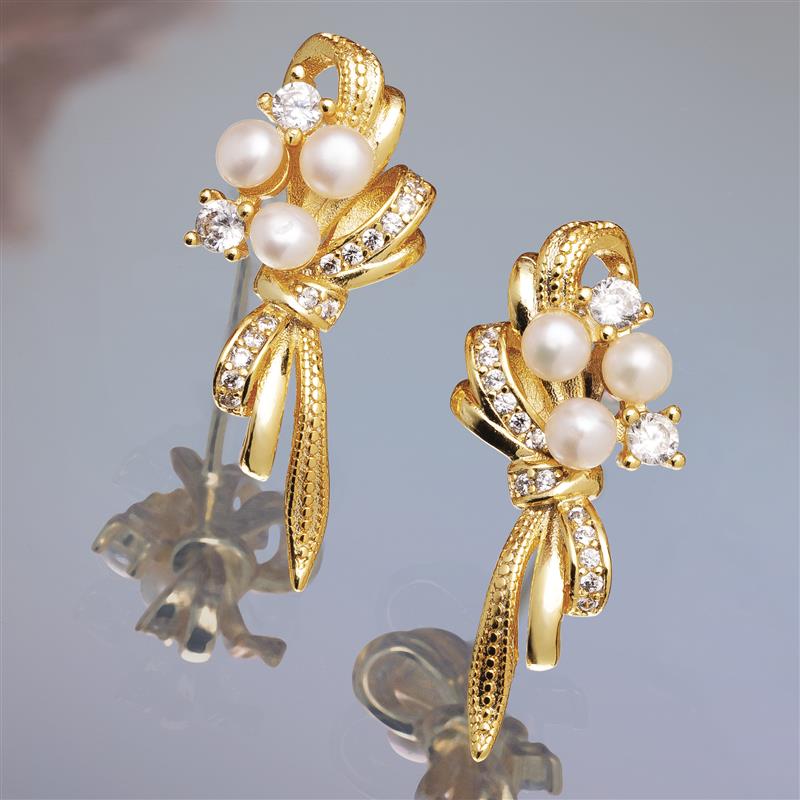 Inspired by my bidding, we’ve created the Timeless Grace Pearl Collection, a freshwater pearl jewelry set that’s sure to take her breath away. This classic ring and earring pairing features more than two dozen beautiful cultured freshwater pearls. Surrounded by sparkling white stones and placed in a yellow gold-finished setting, this collection captures all of the glamor and beauty of Hollywood’s heyday.