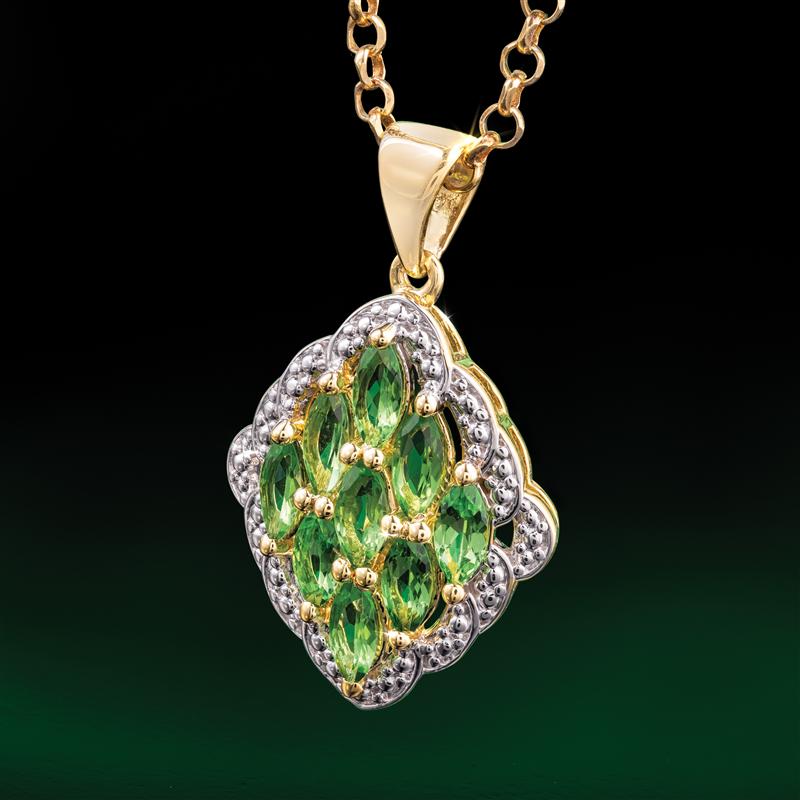 And, while often compared to the most famous green gem, emerald, tsavorite has both a higher refractive index and dispersion, making it explode with fire and color. Tsavorite is also a natural beauty requiring no treatments whatsoever to enhance it. There is also no known imitation, as tsavorite’s complex chemical and physical properties makes synthesizing impossible. The Tsavorite Discovery Collection gives you this beautiful rare gem for a price that’s a rarity in its own right. Pendant comes suspended from a 20” gold-finished sterling silver chain.