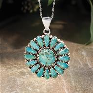The last time I saw him, he opened a drawer and pulled out a collection of beautiful Navajo turquoise jewelry to repay his debt. Pete’s jewelry has inspired our Tucson Sun Turquoise Pendant and Chain, jewelry that features enhanced turquoise in a Southwestern motif. Finished with oxidized silver, this jewelry captures the beauty and mystery of the Arizona desert.